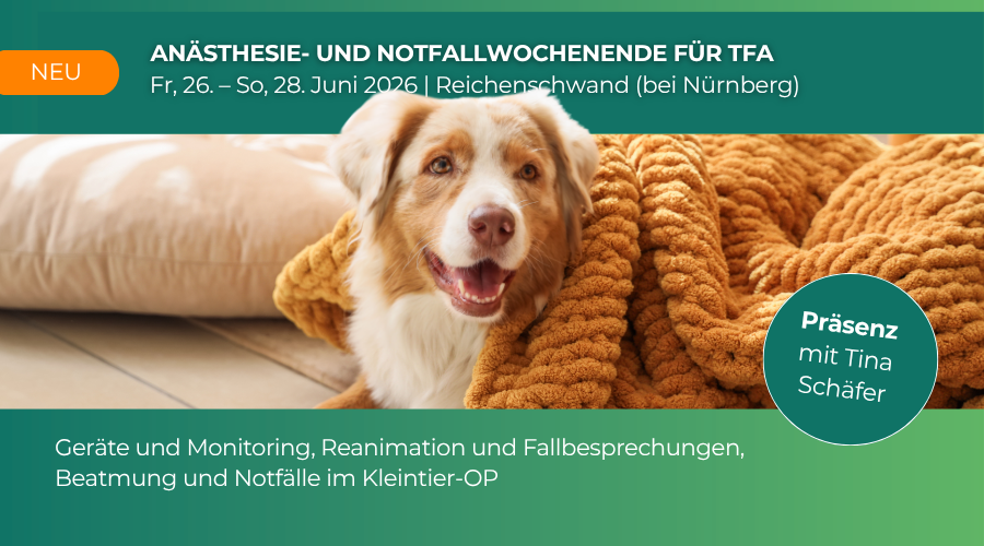Das Anästhesie- und Notfallwochenende für Tiermedizinische Fachangestellte bietet ein umfassendes Training rund um Anästhesie, Monitoring und Notfallmanagement beim Kleintier. Unter der Leitung von Referentin Tina Schäfer erhalten die Teilnehmenden direkt umsetzbares Know-how für den Praxisalltag – von der sicheren Anwendung relevanter Geräte über die Interpretation wichtiger Parameter bis hin zum strukturierten Handeln in kritischen Situationen.